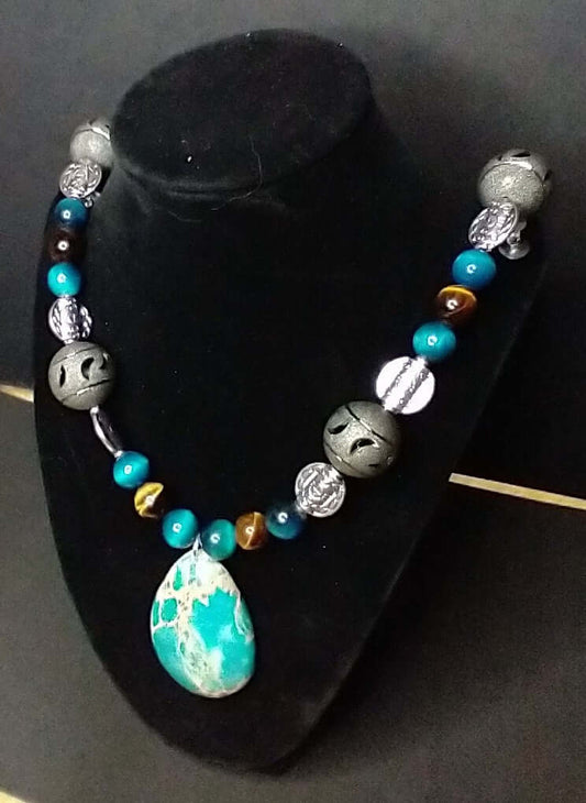 Ancient Alien Necklace Style Turquoise & Blue Tiger Eye