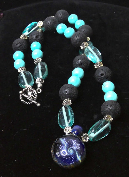 Cosmic Galaxy Art Glass and Turquoise Necklace