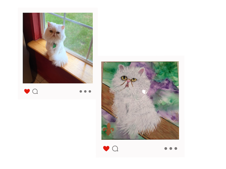 Submit Photo References – The client will supply clear photos of the pet that will be used for the portrait along with as much detail as possible about what they want their portrait to look like. It is the responsibility of the client to supply any photographs or other materials that will be used as references for the portrait. These reference materials can be sent to the artist by sending them as an attachment to an email or can be texted to 910-273-2420.